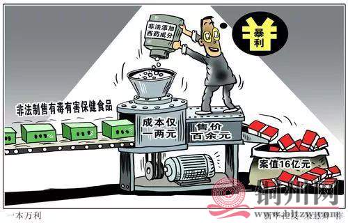 [size=1em]案例2017年底,吉林省辽源市食品药品监督管理局联合公安机关成功破获“健康乐缘营养俱乐部”生产销售非法添加格列本脲、盐酸苯乙双胍等药品的“鸿翔蜂胶茯苓山药片”食品案,查获以犯罪嫌疑人孙某、张某为首的生产销售非法添加药品的有毒有害食品团伙案,涉案金额达1000余万元。公安机关抓捕犯罪嫌疑人12人。 套路五:三五产品