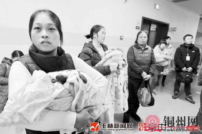 29日,记者走访了玉林市第一人民医院和玉林市中医医院,看到等待就诊的患儿不少,其中很大一部分是由于感冒发热需要就诊的。“老二上周感冒发烧了一周,现在又到老三,我几乎天天都在医院。”在急诊科,正在带孩子排队看病的李女士告诉记者,她原本昨日想给孩子办住院的,无奈儿科病房竟一床难求,“有些家长,早上七点钟就去病房排队等床位。”